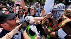 Scuffles break out between pro-Palestinian and pro-Israel activists, with no sign of student demos tailing off. Read More