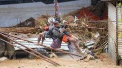 People are left stranded on rooftops in Kathmandu with workers carrying out rescues on rafts. Read More